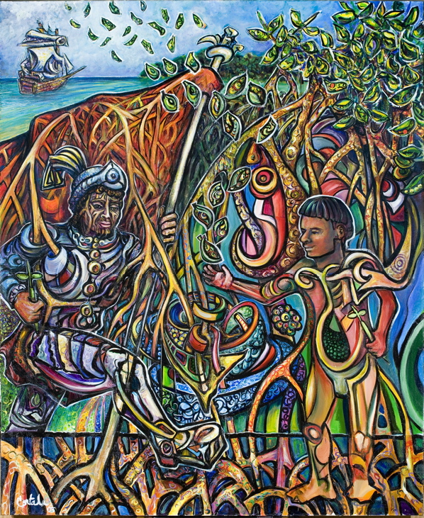 First Encounter: 1566” depicts Pedro Menendez de Aviles landing at