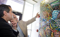 Cortada presents his mural before Commissioner Sanchez, Commissioner