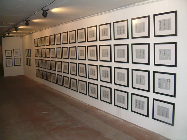 pencil on paper/series of 56 framed drawings, each 8.5" x 11", (2004)
