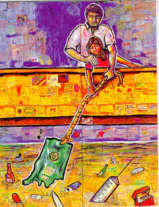 "COMMUNITY U Mural," Mixed media on canvas, 8 feet by 6 feet,