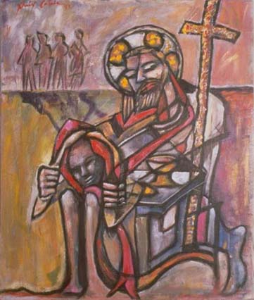 Xavier Cortada, "Modern Leper," 28" x 22," acrylic on canvas, 1995.