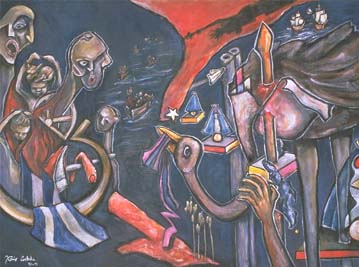 Xavier Cortada, Drownings, 30" x 40", Acrylic on Canvas, 1995.