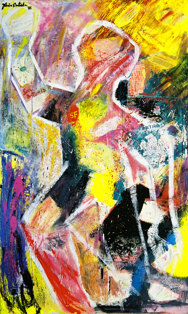 Xavier Cortada, "Metaphor: The Join Together Painting," 30" x 36," acrylic and mixed media on canvas, 1996.