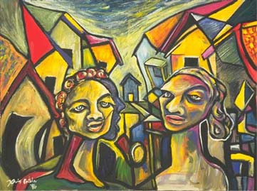Xavier Cortada, "Vecinas," 30" x 40," acrylic on canvas, 1996.