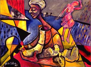 Xavier Cortada, "Mater Nostra Qui...", 30" x 40," acrylic on canvas, 1997.