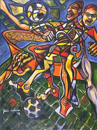 Soccer Xavier Cortada,"Soccer", acrylic on canvas, 42" x 36", 1998.