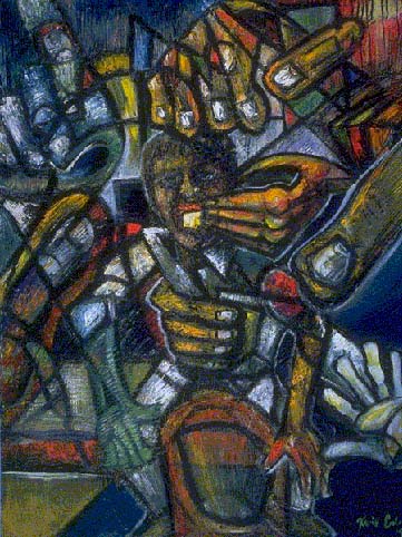 Xavier Cortada, "Manipulaciones," 48" x 36," oil on canvas, 1998.