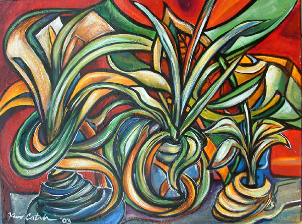 Xavier Cortada, Pots with red background, 30" x 40", acrylic on canvas, 2003 (www.cortada.com)