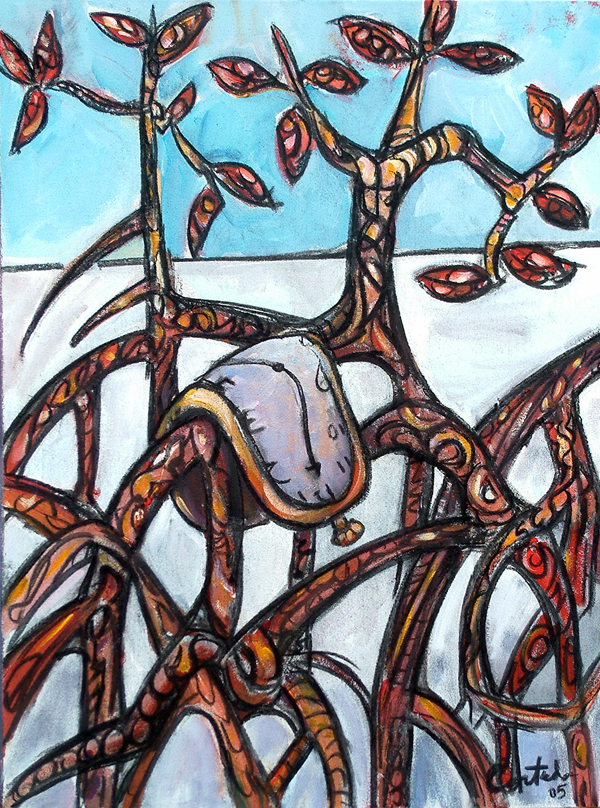 Xavier Cortada, Persistence of the Mangrove (Homage a Salvador Dalí), 24" x 18", acrylic on canvas, 2005 (www.cortada.com)