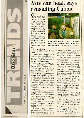 The process, ideally, is getting substance-abusing children together to work on a mural, he explains. By working together, the children learn leadership skills, they learn to delegate and to work as a team. And, "the mural remains a conspicous reminder of the process in the community", says Cortada, who learnt to paint at the age of seven from his uncle and his father, both professional artists in Miami. Cortada chose to bring his art to South Africa and particularly Soweto for a number of reasons. For one, he wanted the people of Soweto "to see art, to see other forms of expression". He also hopes outsiders will come to Soweto, perhaps for the first time, to see his work. And finally, he wanted to come to "Mandela's neighbourhood" to "bring closure to Miami's rebuke of Mandela". About three years ago Nelson Mandela offended Cubans in Miami over his remakrs regarding his relations to Cuban president Fidel Castro. Cortada says he deliberately brought two paintings depicting the suffering that Castro has inflicted on Cubans. With his presence here and these two paintings, Cortada says he is telling Mandela: "I respect you but I disagree with your views." "The connection is that his people and my people suffer, but his people are now free."