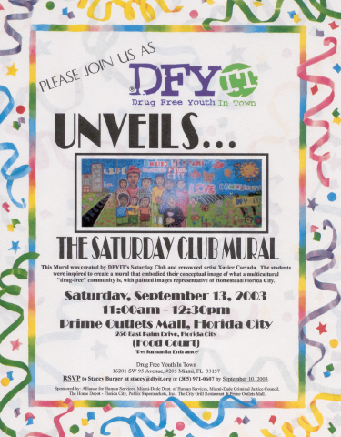 An Unveiling/Celebration Ceremony for the community mural the students of the DFYIT Saturday Club created with acclaimed artist Xavier Cortada was revealed on Sept 13th.