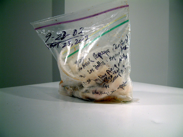Xavier Cortada, WAIST-ED: September 23, 2003, uneaten food, clear plastic bag, permanent marker, 2003 (www.cortada.com).