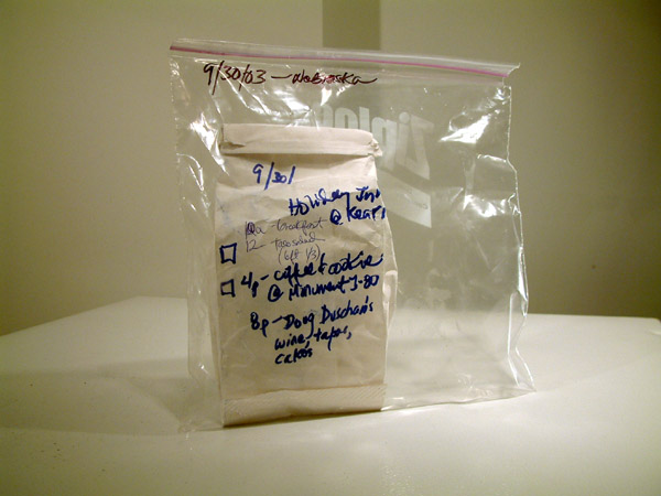 Xavier Cortada, WAIST-ED: September 30, 2003, uneaten food, clear plastic bag, permanent marker, 2003 (www.cortada.com).