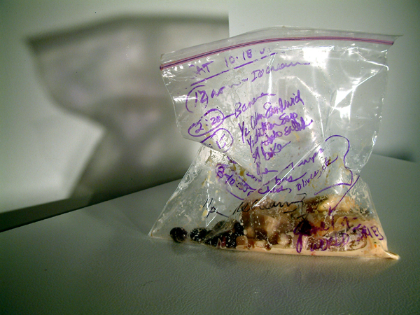 Xavier Cortada, WAIST-ED: October 18, 2003, uneaten food, clear plastic bag, permanent marker, 2003 (www.cortada.com).