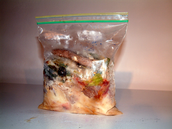Xavier Cortada, WAIST-ED: November 29, 2003, uneaten food, clear plastic bag, permanent marker, 2003 (www.cortada.com).