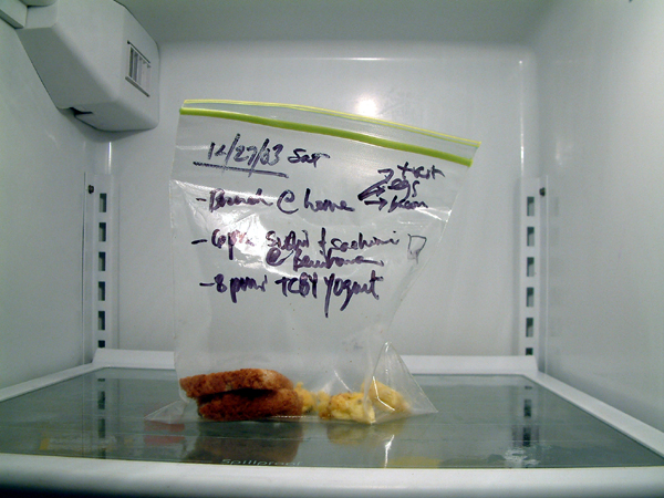Xavier Cortada, WAIST-ED: December 27, 2003, uneaten food, clear plastic bag, permanent marker, 2003 (www.cortada.com).